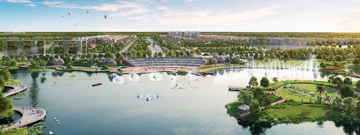 ▫️ Trục cảnh quan trung tâm với hồ nước và công viên sinh thái, nơi 65% diện tích được phủ bởi cây xanh, mặt nước, bảo tàng hoa và quảng trường, khẳng định vị thế của một “thành phố trong vườn”.