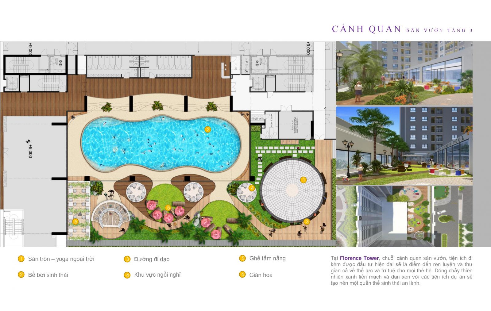 KHUÔN VIÊN XANH QUANH BỂ BƠI CỦA FLORENCE MỸ ĐÌNH